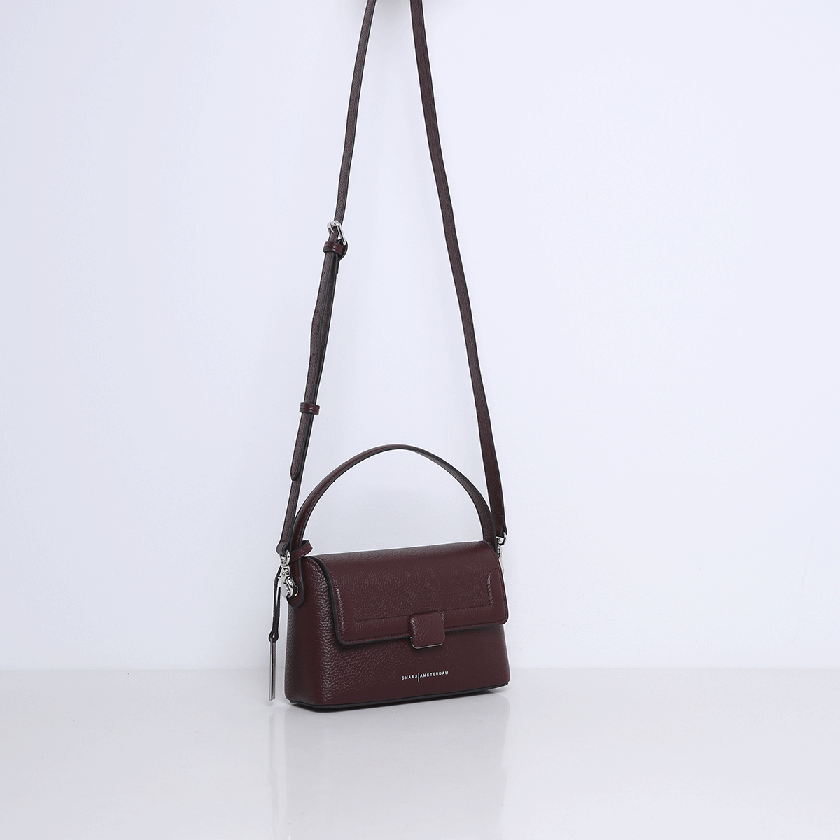 The ALAN has a short handle which can be set back and a detachable leather crossbody strap. The handbag opens at the front with a magnetic closure. There is enough room for all your essentials such as a phone, wallet, (sun)glasses and keys. The rectangular and open shape allows you to easily and conveniently access your belongings.