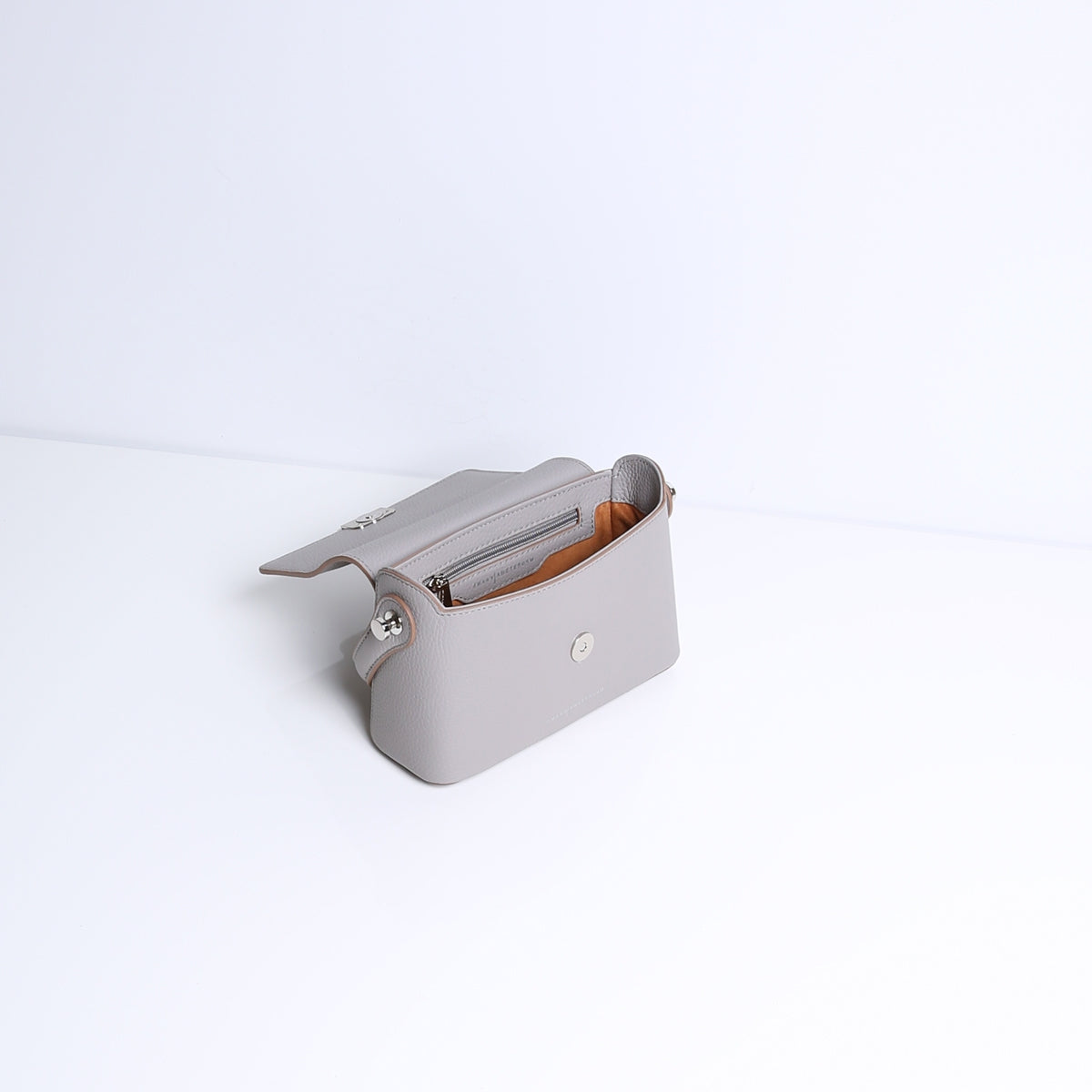 The ALAN has a short handle which can be set back and a detachable leather crossbody strap. The handbag opens at the front with a magnetic closure. There is enough room for all your essentials such as a phone, wallet, (sun)glasses and keys. The rectangular and open shape allows you to easily and conveniently access your belongings.
