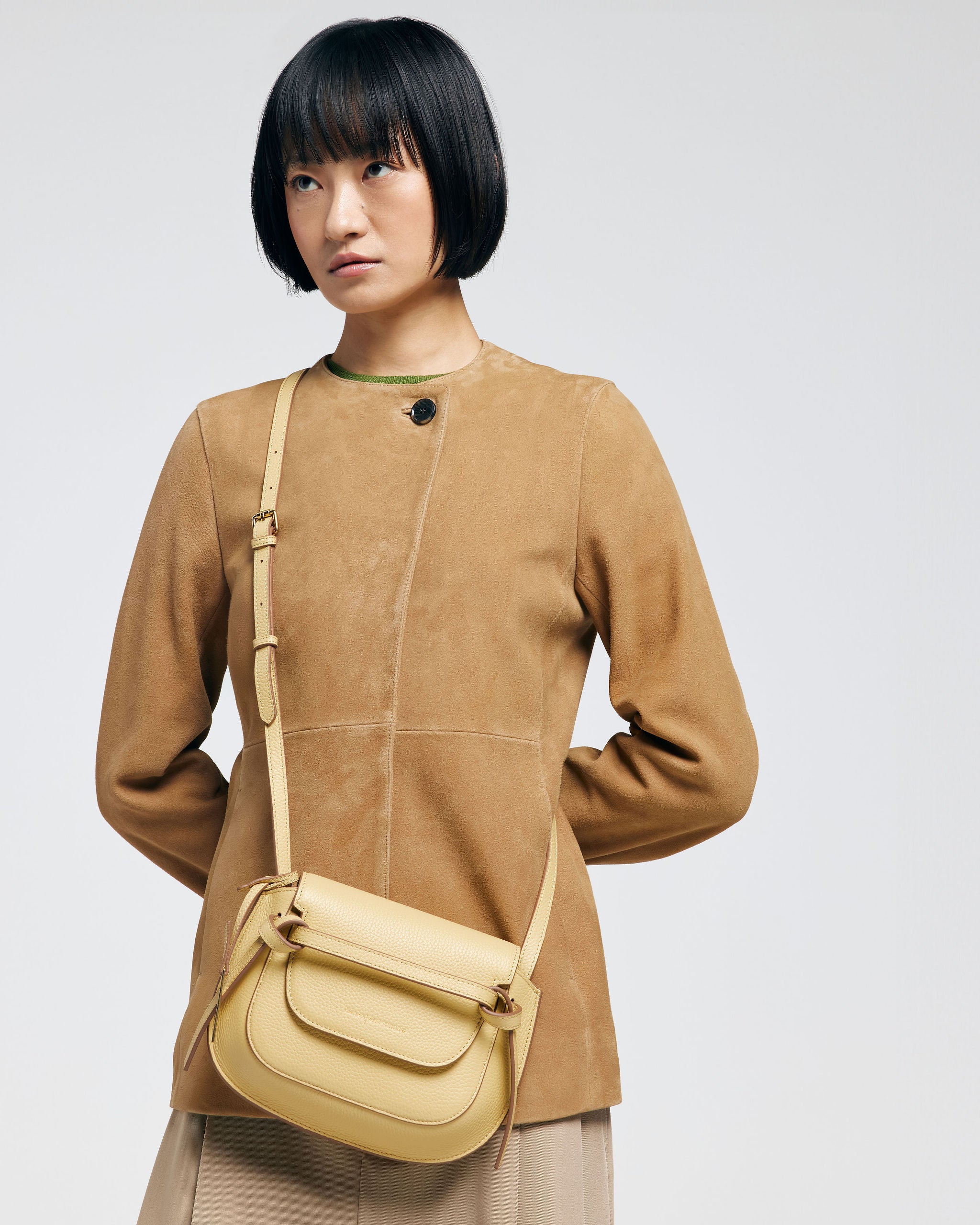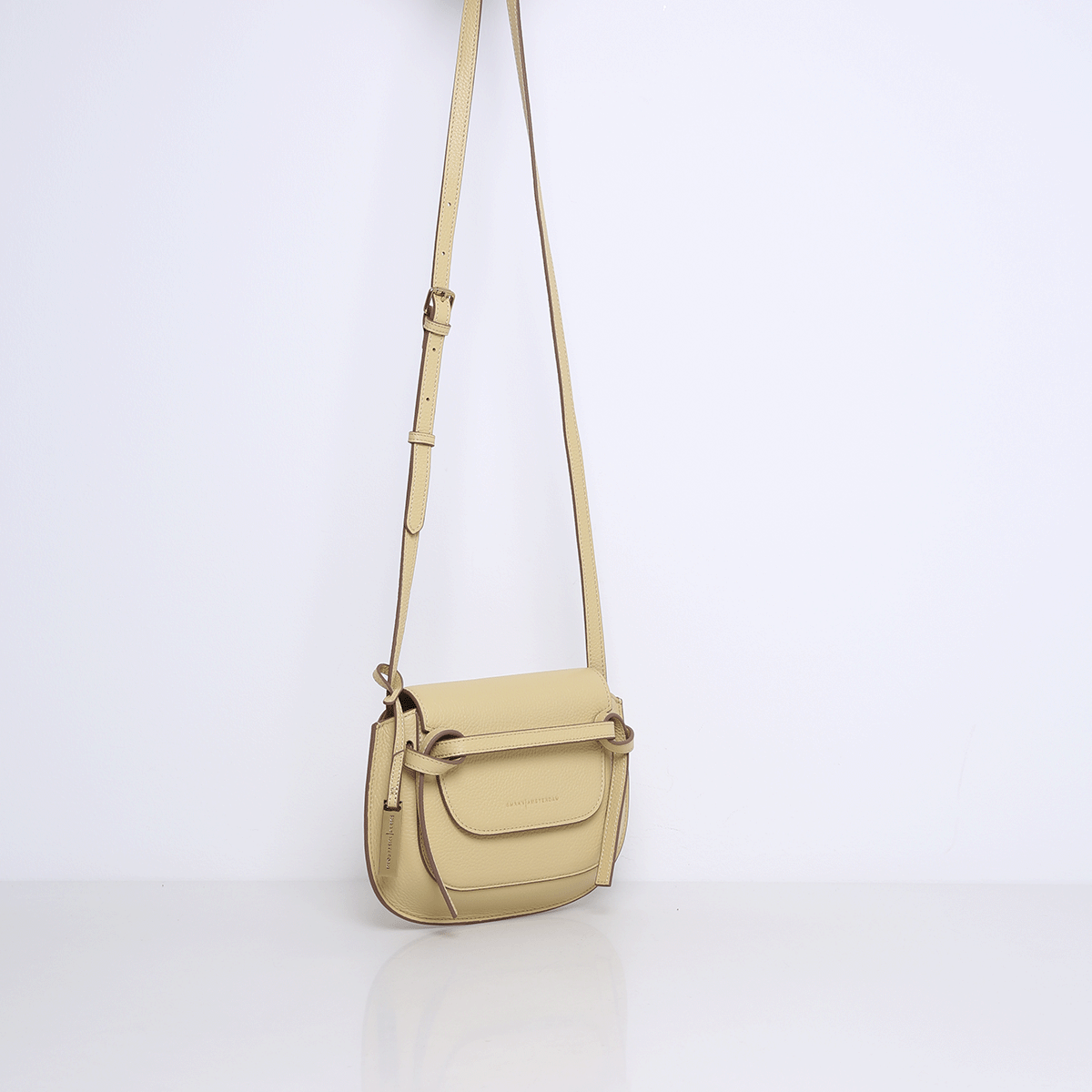 The bag is made of soft and supple cowhide leather. Has several inside pockets and is lined with fabric (viscose). The leather shoulder strap is adjustable in length and is attached to the bag.