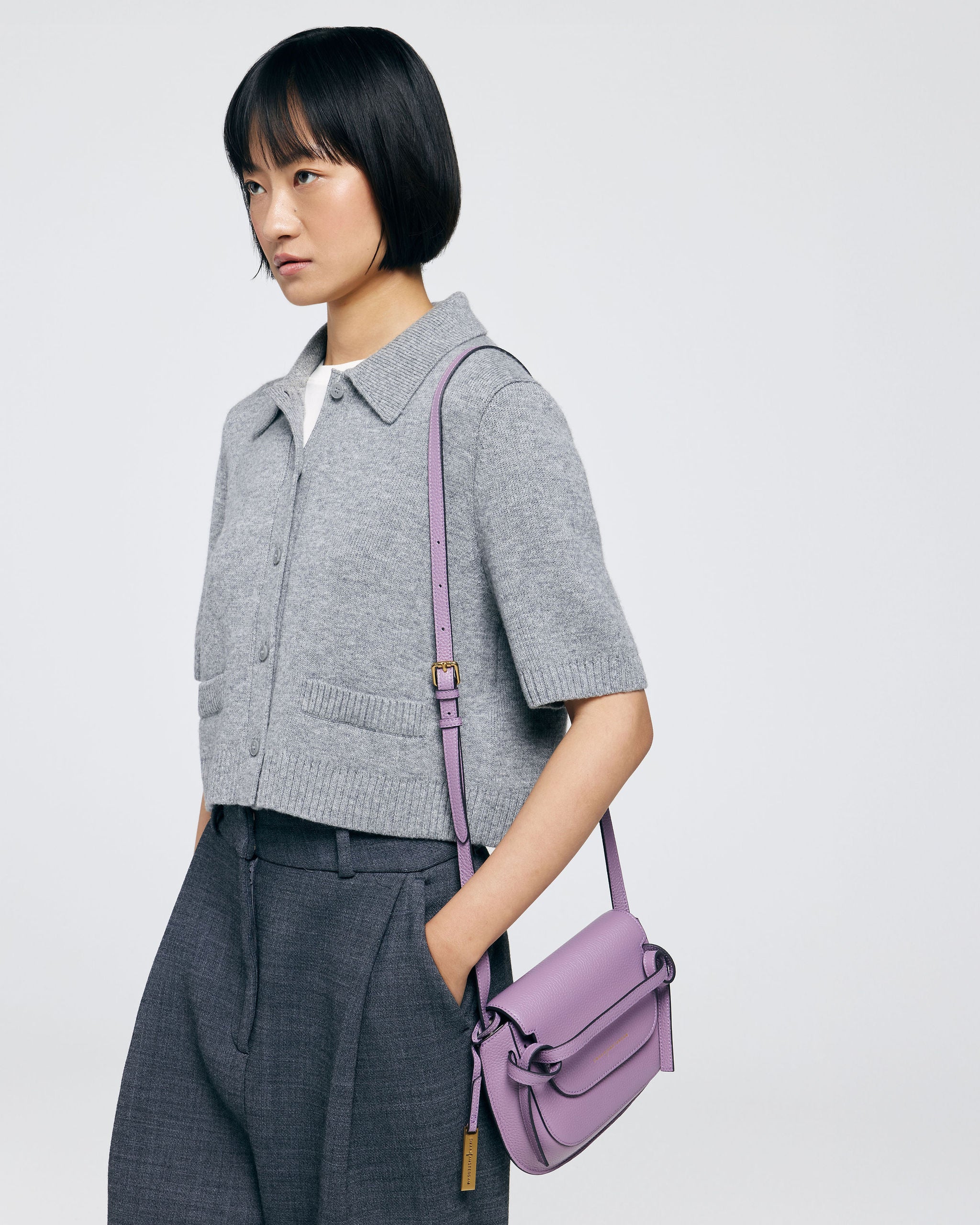 The bag is made of soft and supple cowhide leather. Has several inside pockets and is lined with fabric (viscose). The leather shoulder strap is adjustable in length and is attached to the bag.