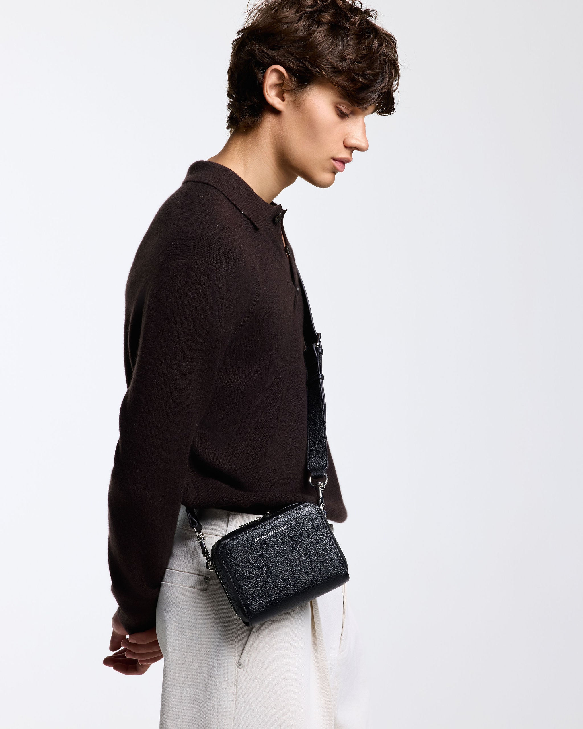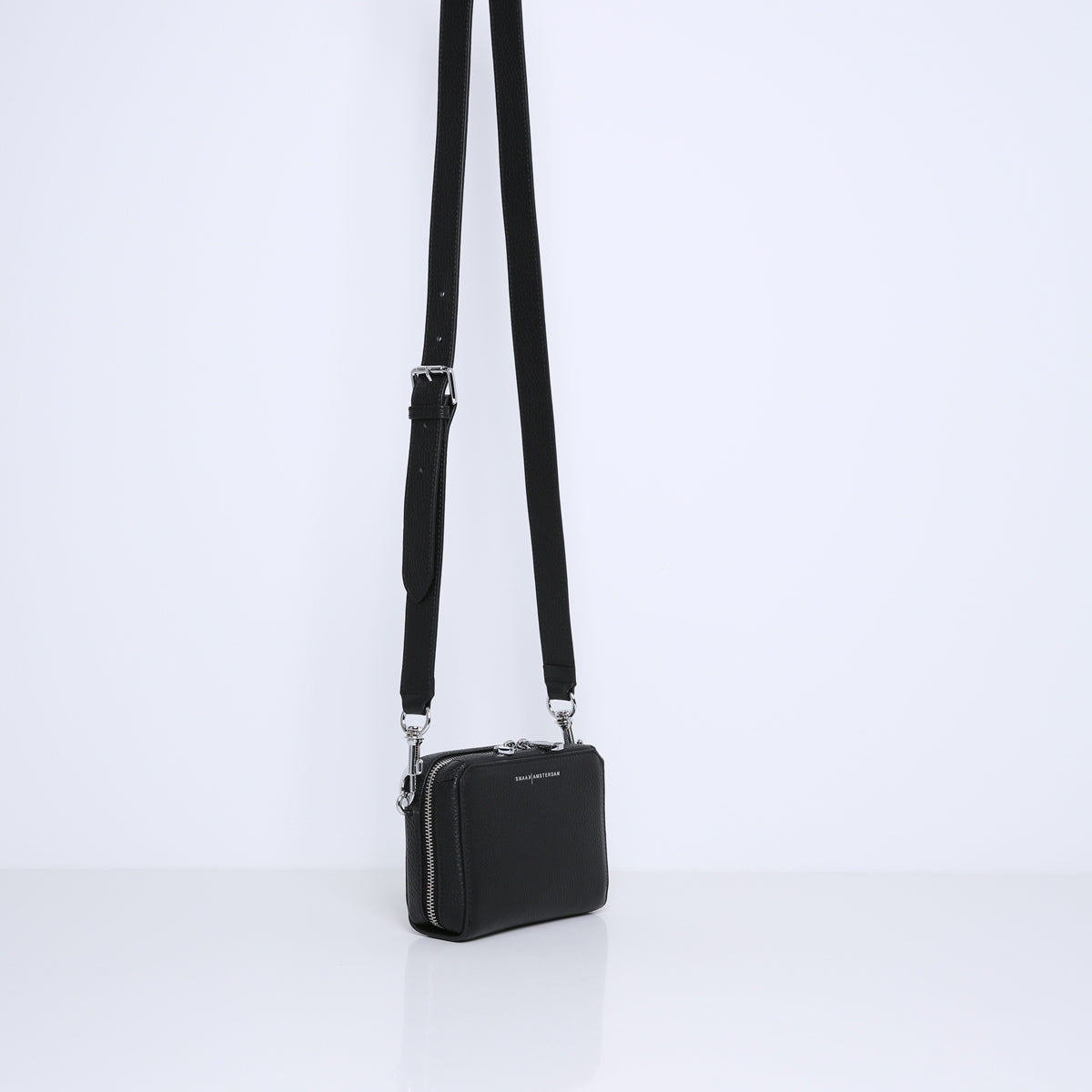 The bag is made of soft and supple cowhide leather. Features two small inside pockets and is lined with suedine (viscose) material.
