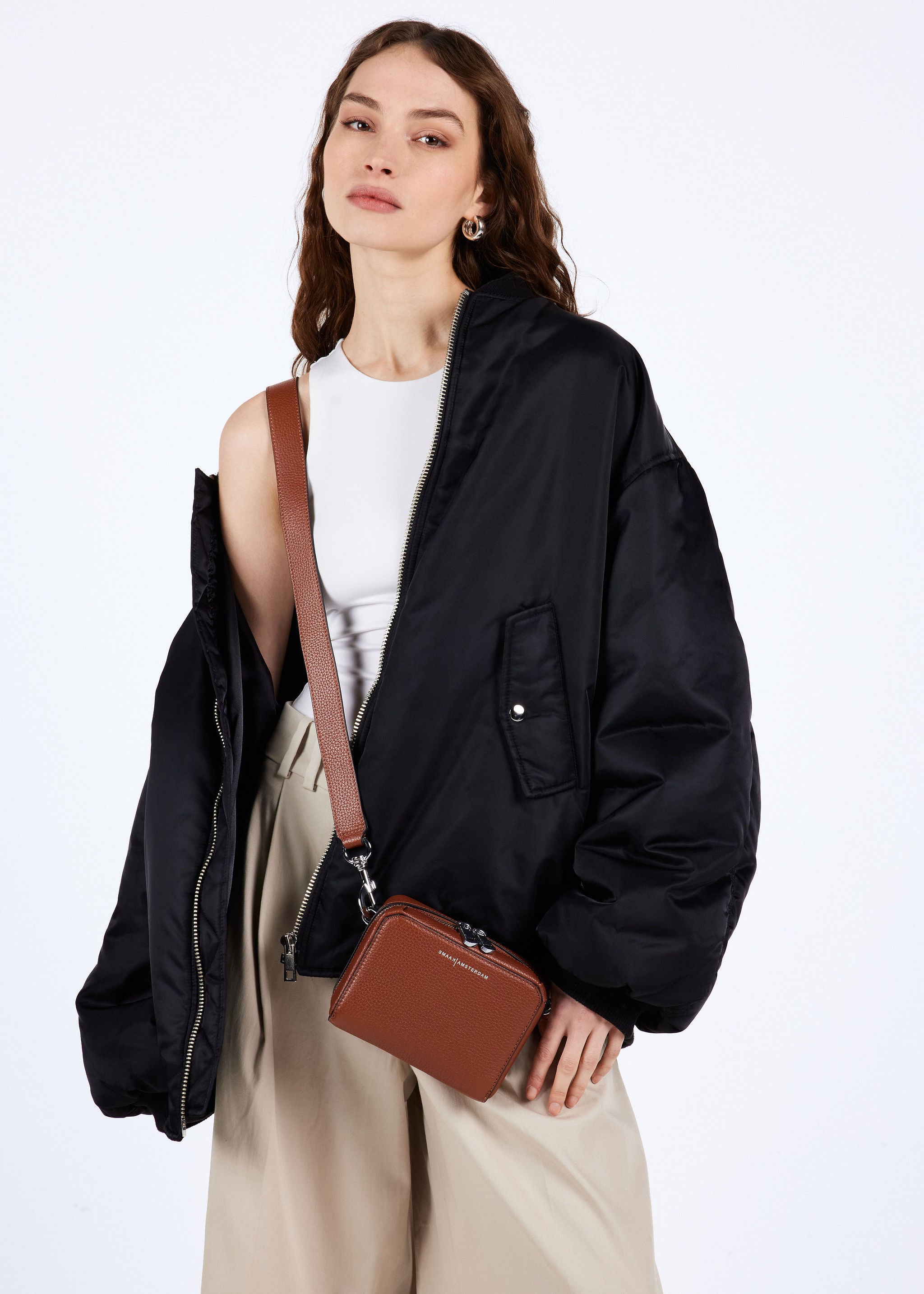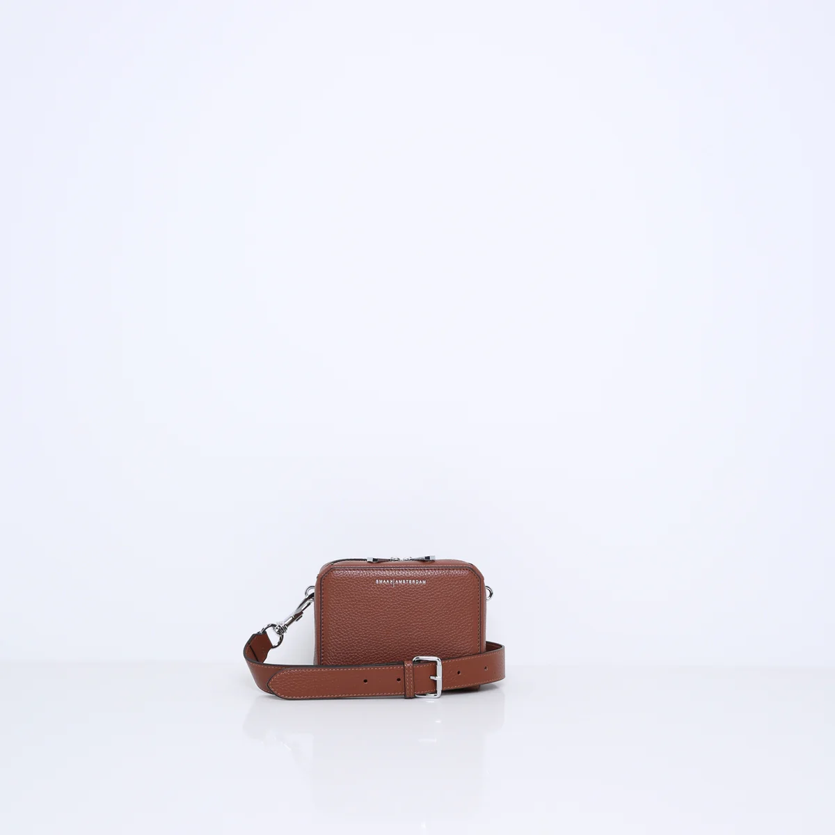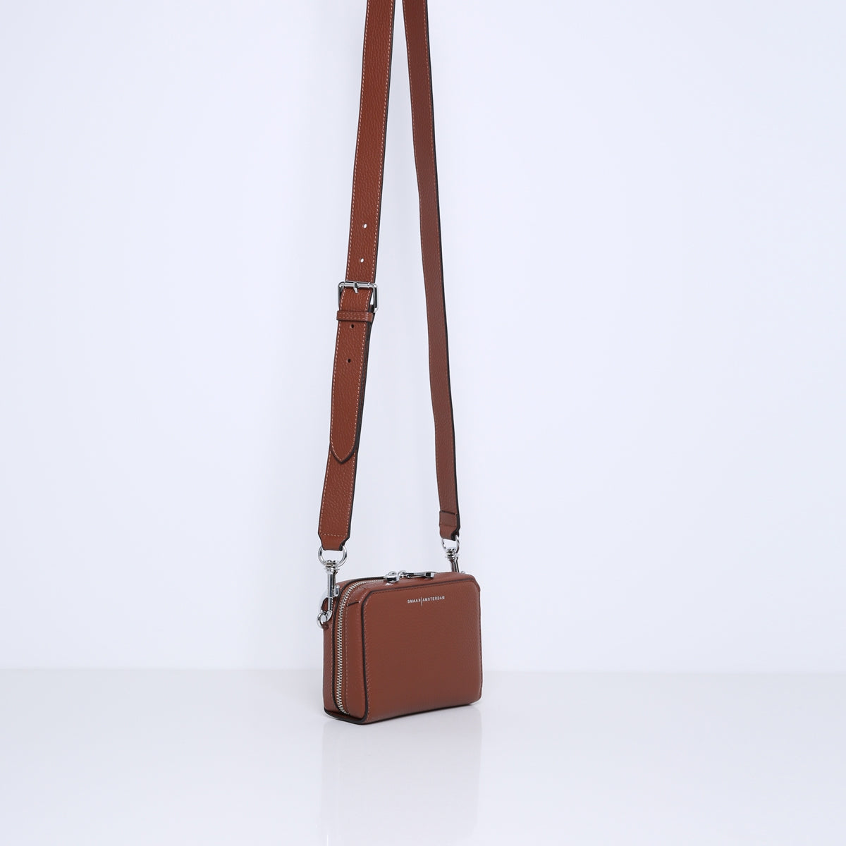 The bag is made of soft and supple cowhide leather. Features two small inside pockets and is lined with suedine (viscose) material.