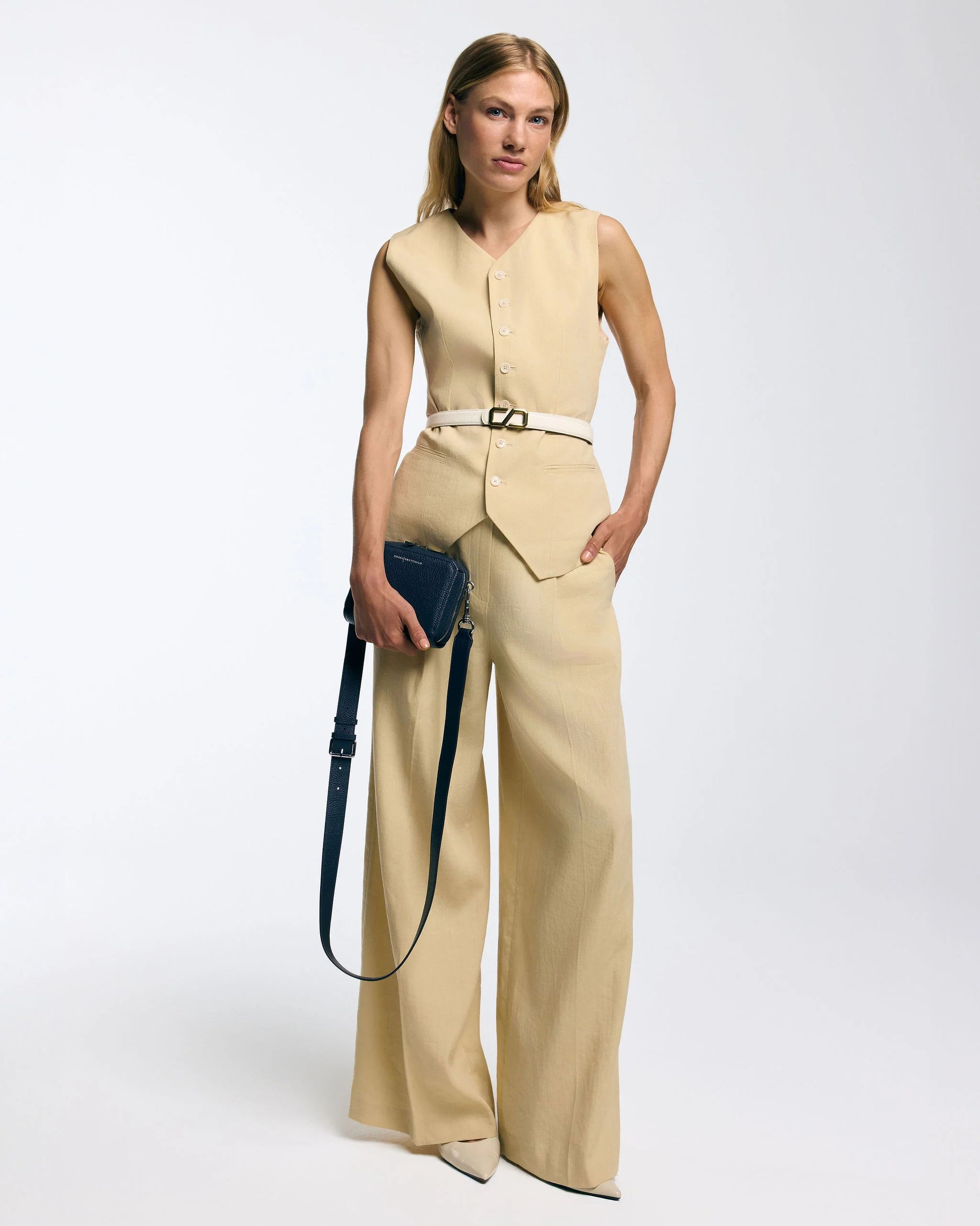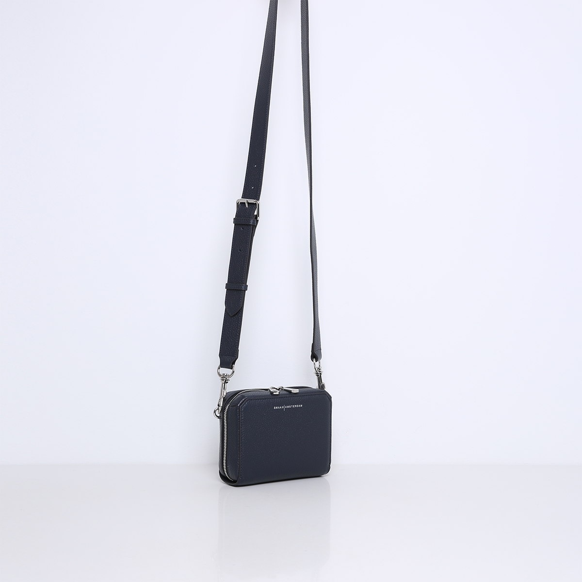 The bag is made of soft and supple cowhide leather. Features two small inside pockets and is lined with suedine (viscose) material.