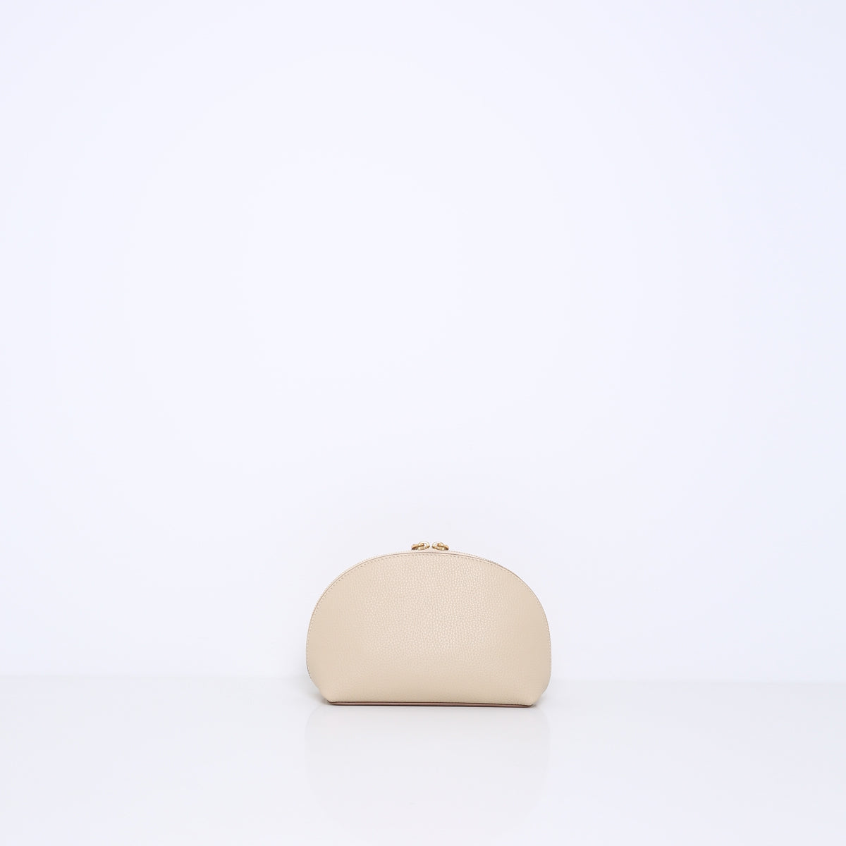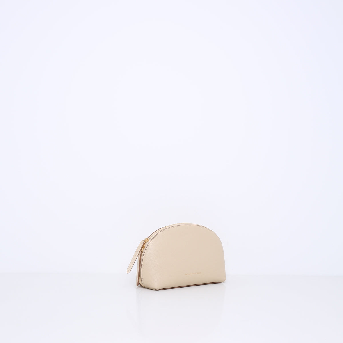 Discover our luxurious leather cosmetic case, designed for versatility and style. This beautiful makeup bag can also serve as a clutch, extra inner bag, or toiletry bag. The interior offers added functionality with separate interior pockets, perfect for storing a mini mirror and separate compartments specifically for lipstick, mascara, and other (makeup) belongings. The interior is lined with soft suedine (viscose) material for a luxurious touch and extra protection of your items. The bag has an elegant round/half moon shape and features a zipper closure at the top that opens on both sides for easy access and a chic look. This cosmetic case combines functionality with sophisticated style, ideal for both everyday use and travel.