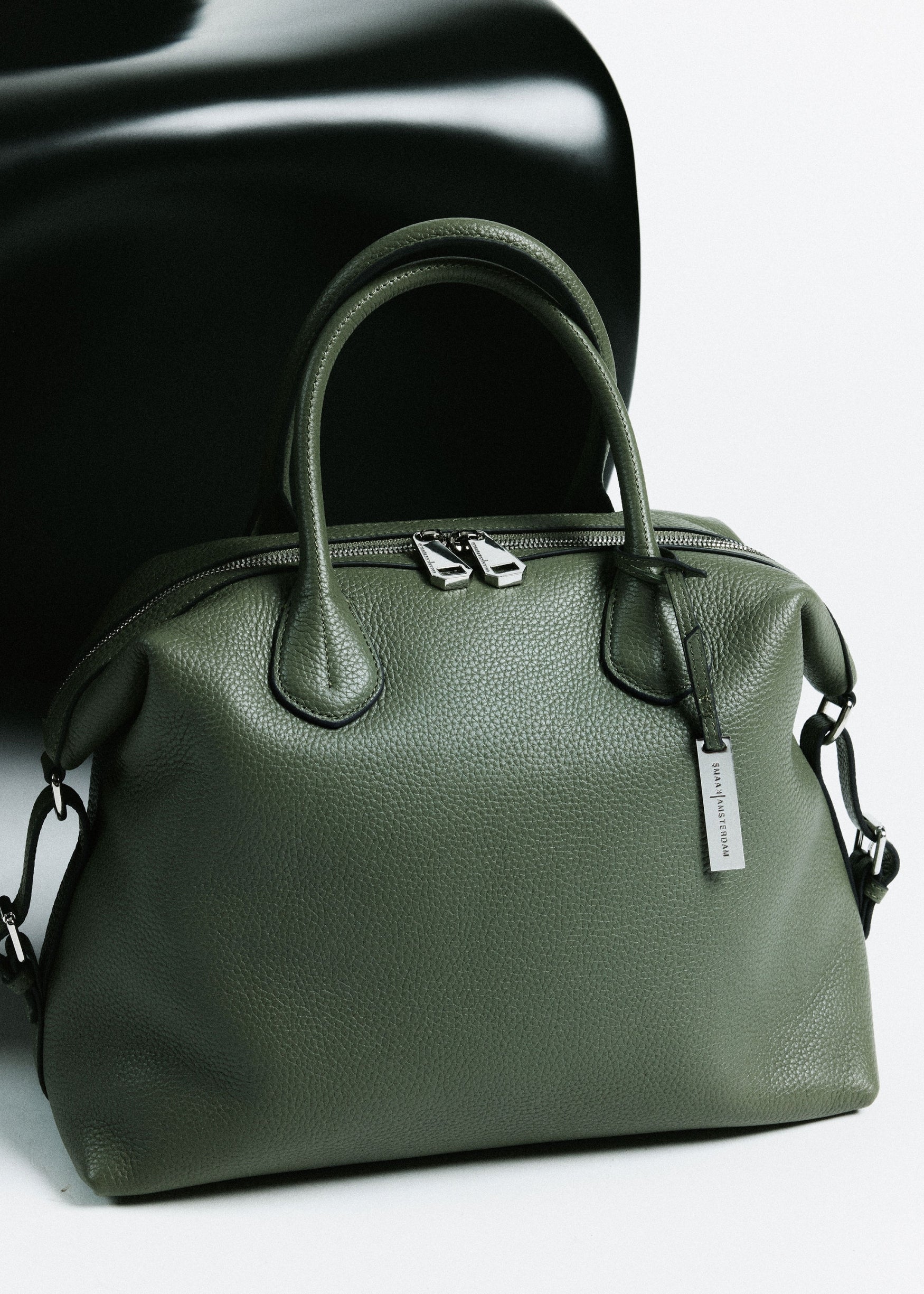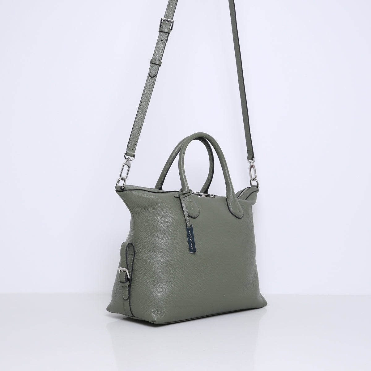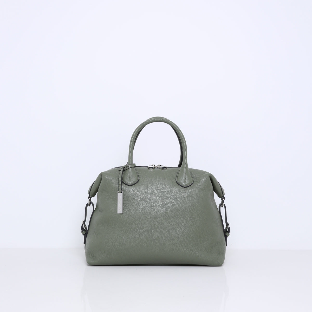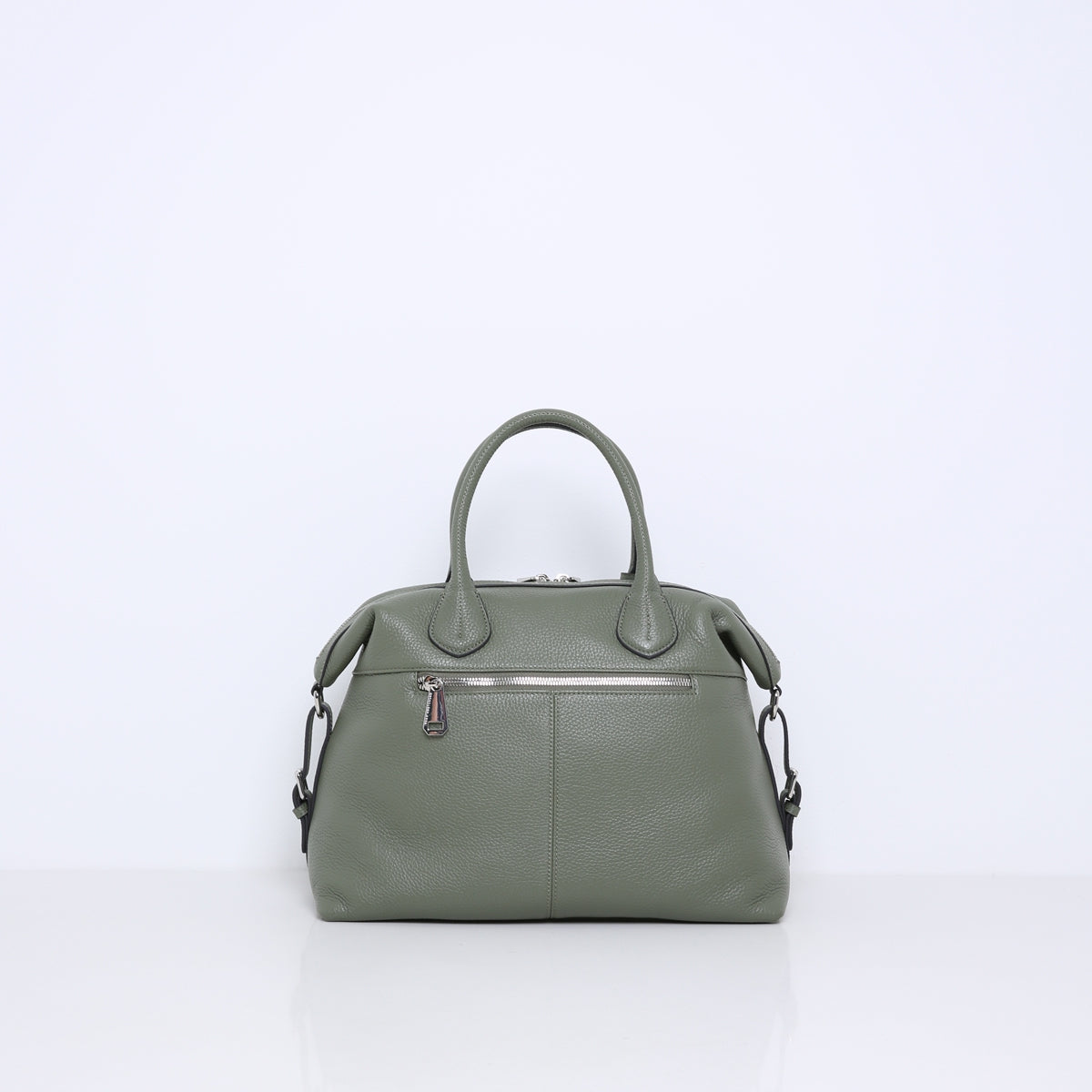 The bag is made of soft and supple cowhide leather. Features multiple interior pockets and is lined with suedine (viscose) material. With the detachable, adjustable leather shoulder strap you can also wear this handbag as a crossbody bag.