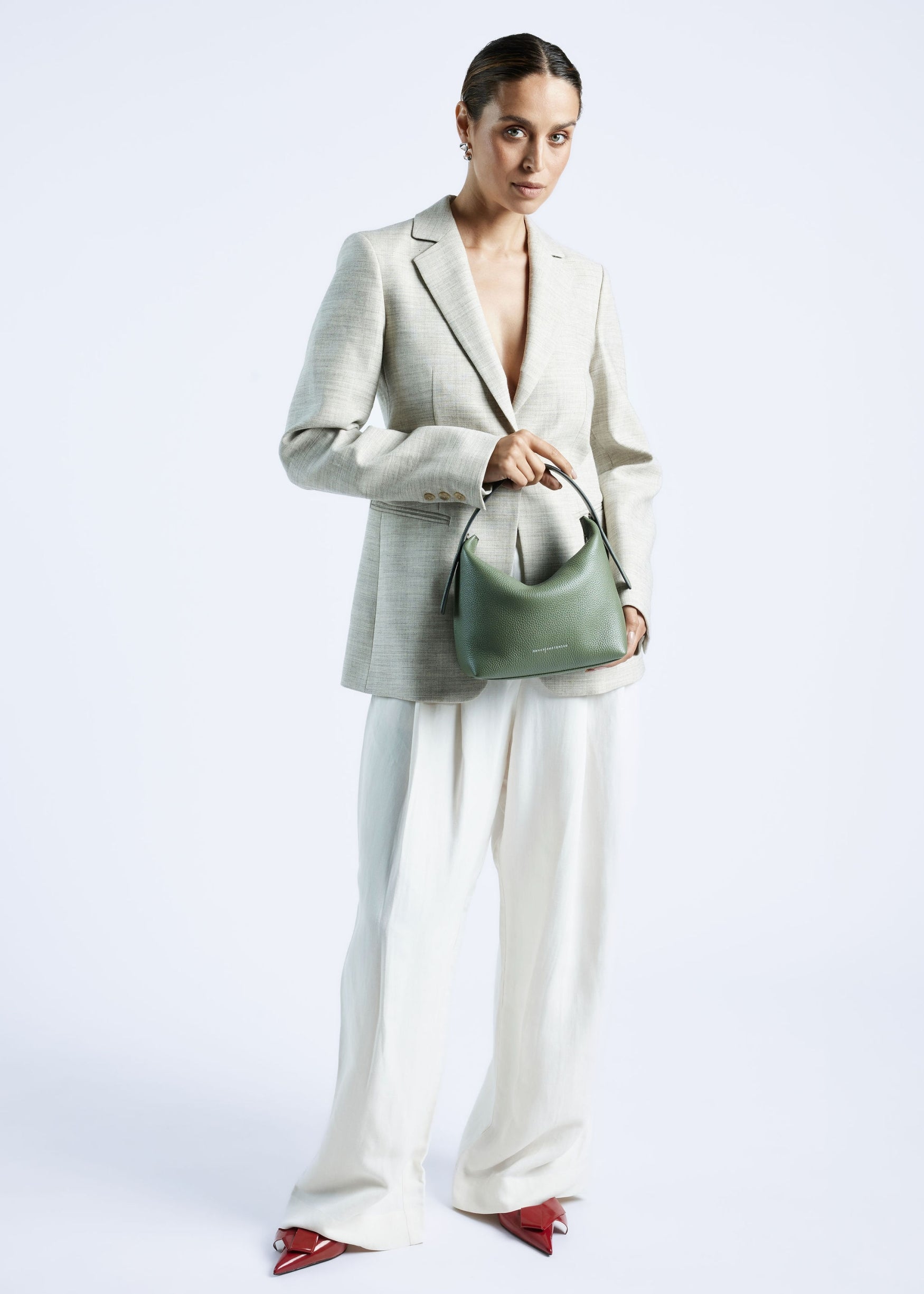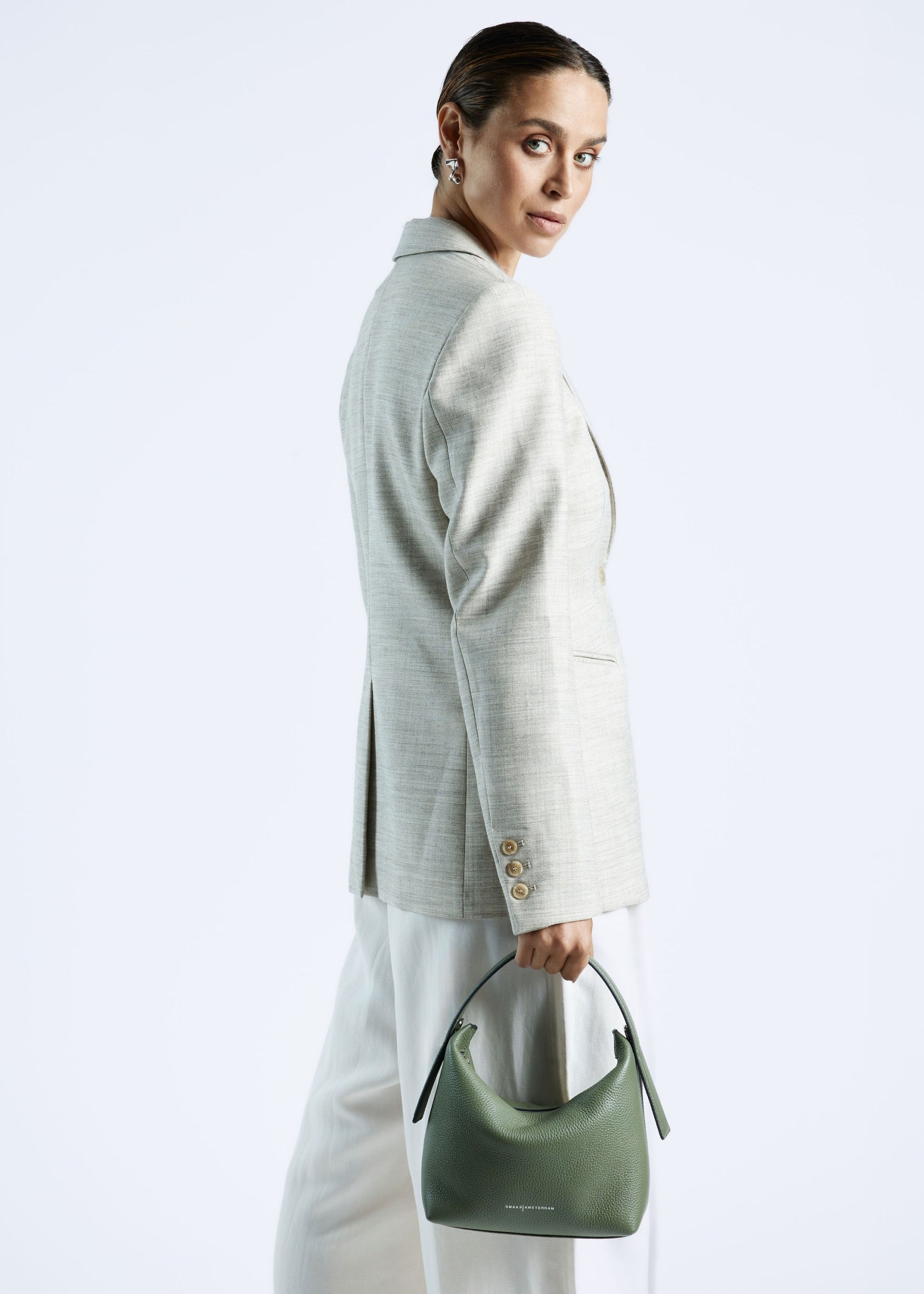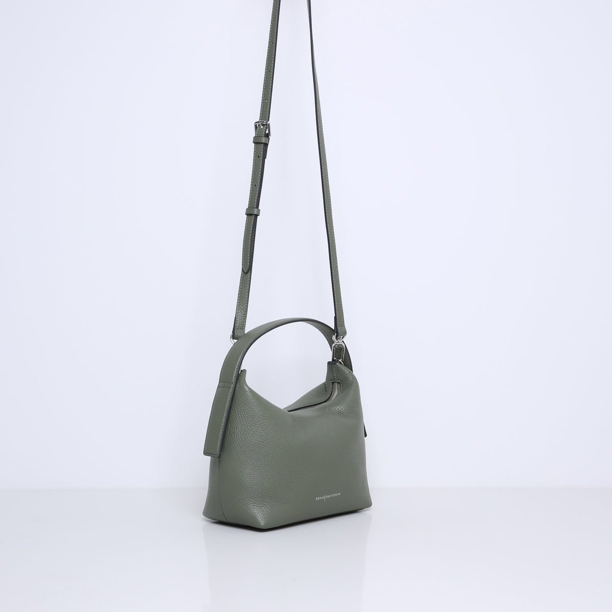 The bag is made of butter-soft supple cowhide leather. Features multiple interior pockets and is lined with suedine (viscose) material. With the detachable, adjustable shoulder strap from 105 cm to 130 cm, you can also wear this handbag as a crossbody bag.