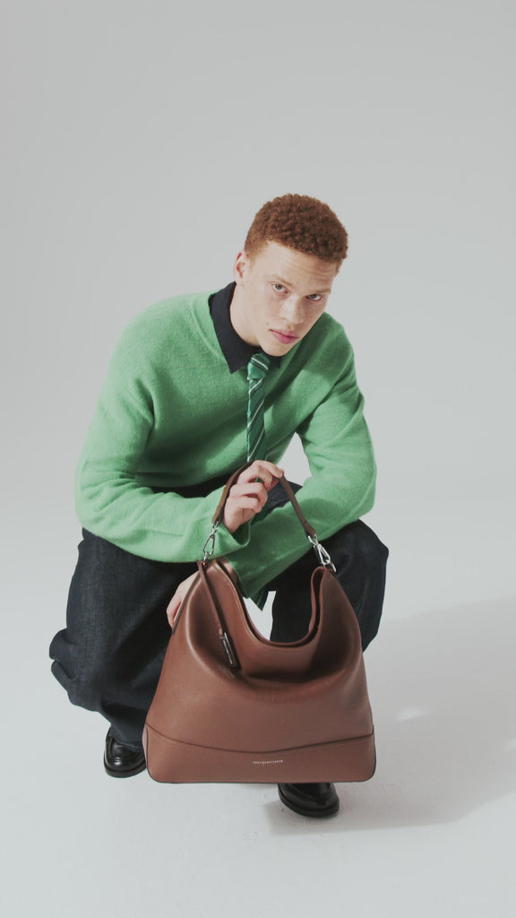 It is a classic hobo bag usually carried over the shoulder with a single wide strap that rests comfortably on the shoulder.