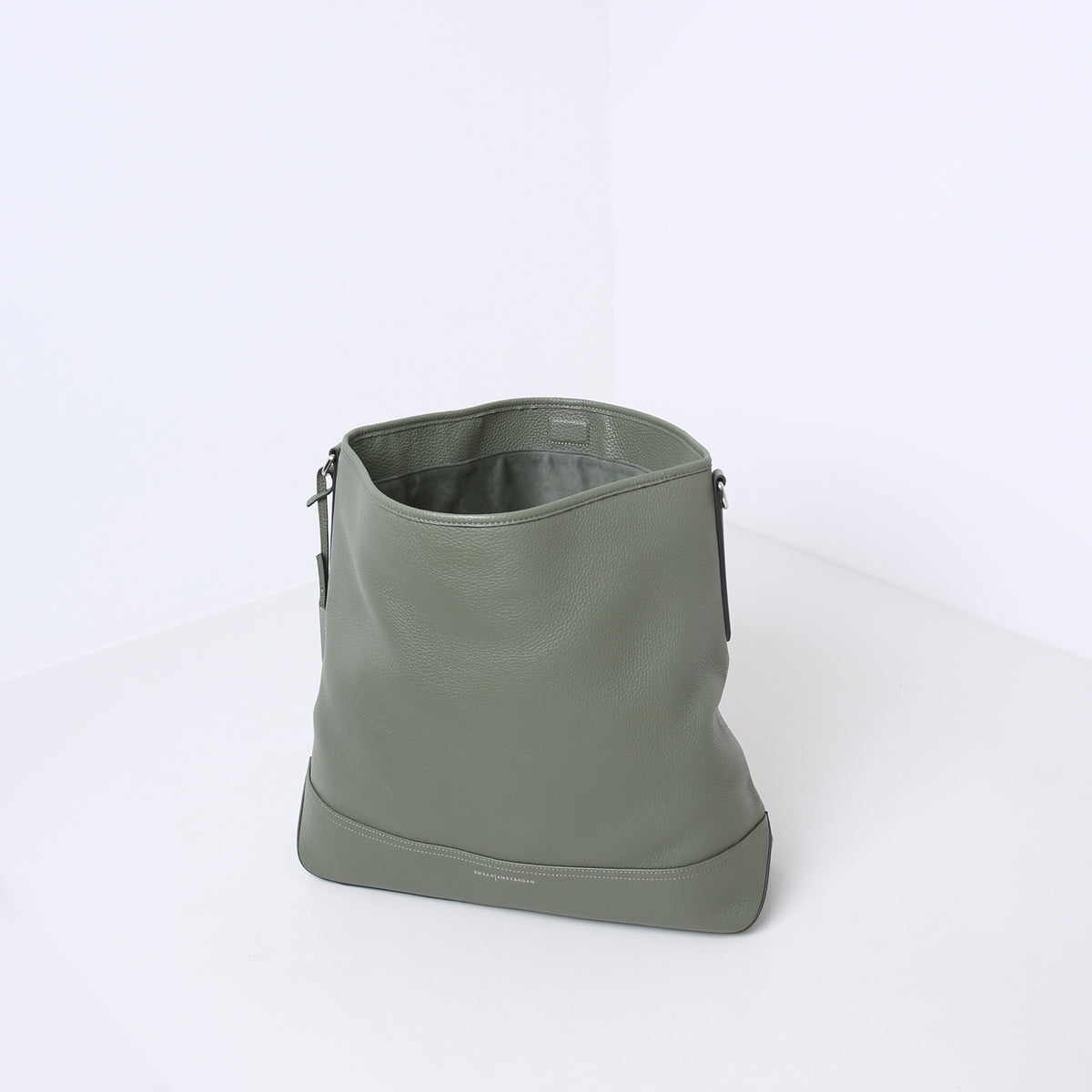 The bag is made of soft and supple cowhide leather. The bag is open at the top and closed with a magnetic closure. Features multiple interior pockets and is lined with suedine (viscose) material.